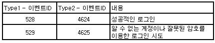 Type별 로그인 성공/실패 이벤트 ID는 아래와 같습니다.